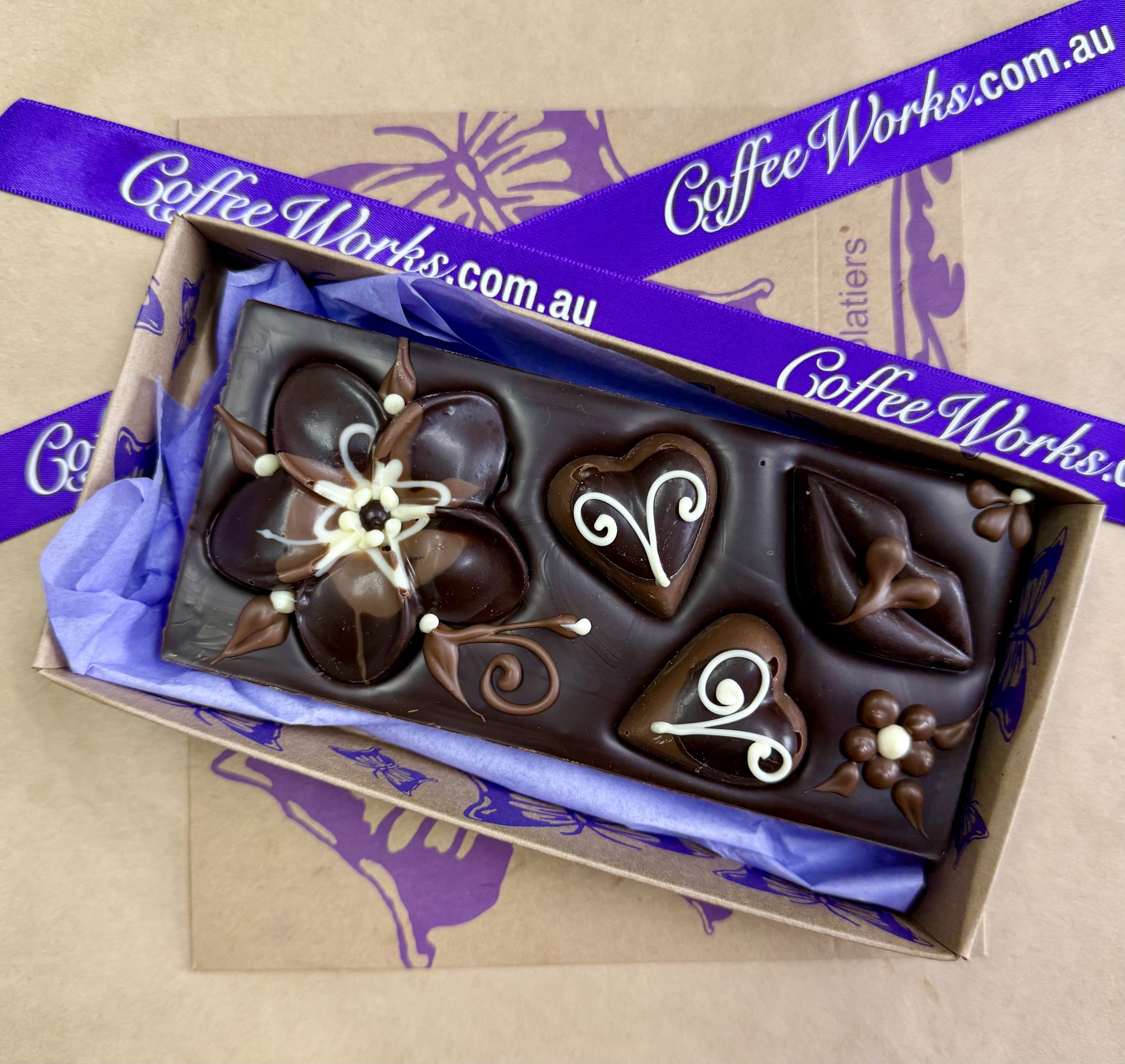 We ONLY send Chocolate Orders on Mondays + Tuesdays. This gives Your Treats plenty of time to arrive safely within that week. Please allow for this when timing Your Order request. Share the Joy!